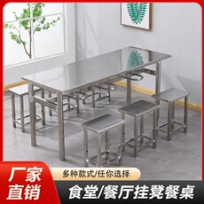 饭堂桌椅不锈钢4人6人饭桌吊凳快餐小吃店分体式组合经济