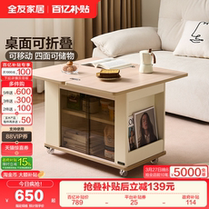 客厅小户型多功能折叠沙发边柜升降生态实木茶几小推车可移动茶桌