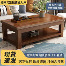 新中式实木茶几现代简约原木茶台双层方形桌子小户型家用客厅茶桌