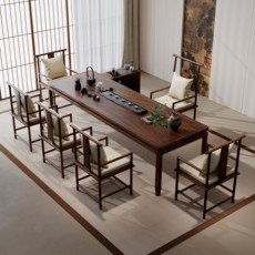 实木大板茶桌椅组合一桌五椅办公室茶几客厅家用新中式功夫泡茶台
