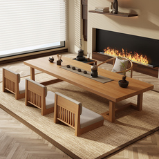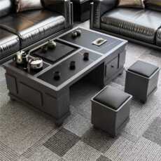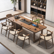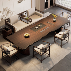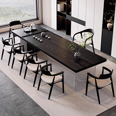 实木大板茶桌椅组合黑色亚克力泡茶桌家用碳化黑质感客厅悬浮茶桌