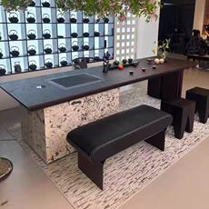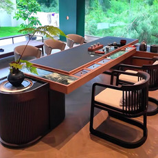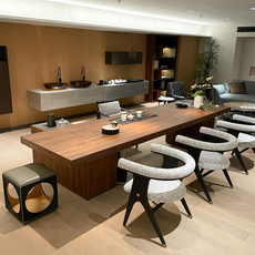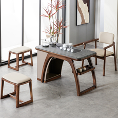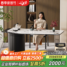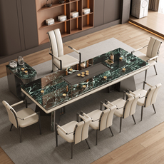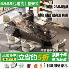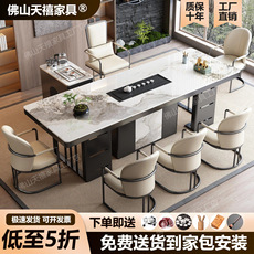 奶油风岩板茶桌椅组合轻奢现代高端茶台办公一体洽谈接待泡茶桌