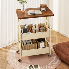 可移动小推车边几奶油风置物架带轮客厅收纳茶几卧室床头柜零食架