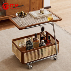 客厅可移动小推车置物架茶几带轮多功能复古沙发边几零食收纳架子