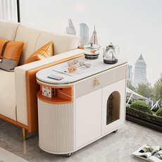 可移动边柜客厅茶台茶边柜实木烧水一体茶车靠墙茶桌沙发侧边茶几