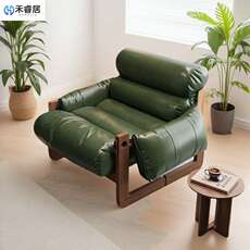 单人沙发椅泽西岛椅客厅复古皮沙发椅子休闲懒人椅实木中古风躺椅