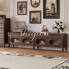 时余保罗美式电视柜收纳储物柜全实木胡桃色法式复古风中古风厅柜