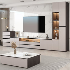 轻奢岩板电视机柜茶几组合小户型客厅家用现代简约收纳储物柜一体