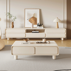 岩板电视柜茶几组合客厅家用2025新款极简小户型实木落地电视机柜