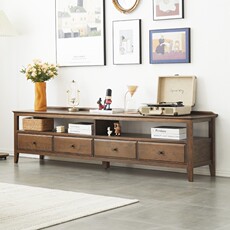 治木工坊全实木电视柜家用美式红橡木1.8米2米地柜胡桃色客厅家具