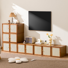 汐岸铝型材简约风桦木海洋板电视柜客厅靠墙储物柜收纳柜可定制柜