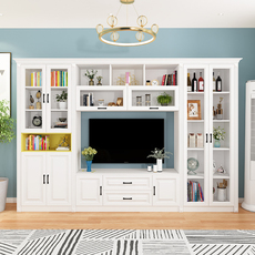 客厅实木满墙整体背景墙电视柜书柜一体组合墙柜子2025组合柜新款