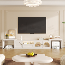 原木奶油风2024新款电视机柜茶几组合圆角客厅落地小户型现代简约