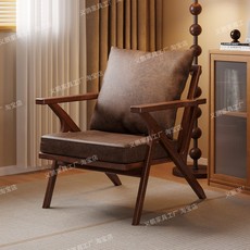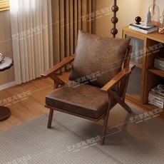 单人沙发轻奢高级感实木沙发椅卧室休闲椅懒人椅中古风高端单椅