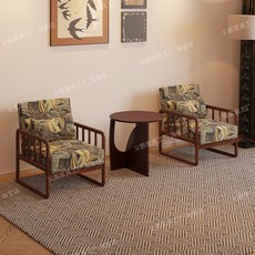 新中式实木沙发椅单人椅设计师款阳台书房办公室休闲椅懒人椅家用