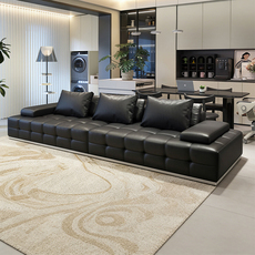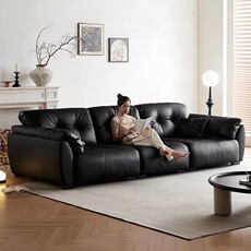 意式极简可调节移动靠背超深坐宽高靠背头层真皮云朵皮艺沙发黑色