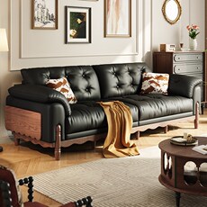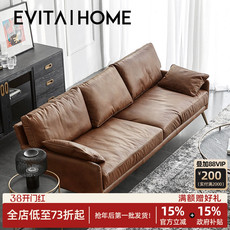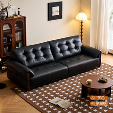 中古风沙发客厅油蜡皮小户型黑色家用法式复古风皮艺沙发2025新款