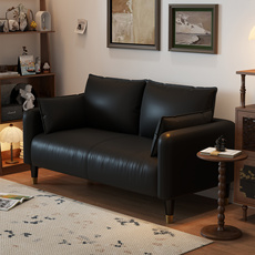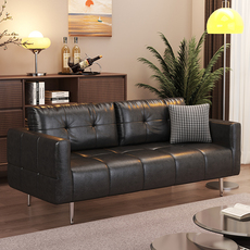 沙发小户型复古客厅出租房公寓卧室直排双三人简易黑色皮艺小沙发