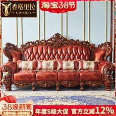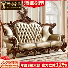 欧式复古沙发 美式奢华别墅客厅实木雕花仿古色1234组合皮艺沙发