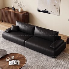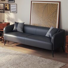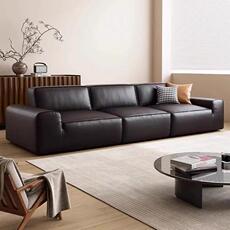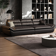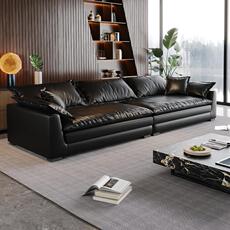 北欧轻奢布雷尔头层牛皮真皮沙发极简直排小户型黑色一字型皮艺沙