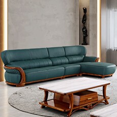 乌金木真皮沙发转角贵妃头层牛皮新中式皮艺豪华别墅客厅实木沙发