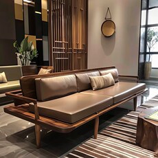 新中式胡桃木客厅沙发2026新款单人沙发高端实木真皮直排皮艺沙发