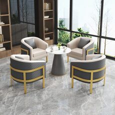 轻奢皮艺单人阳台休闲小沙发休息区接待酒店商务会客洽谈桌椅组合