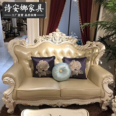 欧式皮艺沙发 新古典123组合客厅大小户型珍珠白实木雕花家具