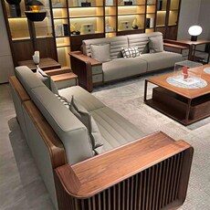 新中式乌金木真皮沙发豪华别墅客厅大小户型家用欧式实木皮艺沙发