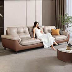 全友家居门店款 时尚风 U10001 真头层黄牛皮直排一字型皮艺沙发