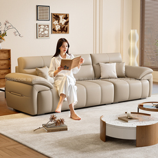 意式极简豆腐块皮艺沙发家用客厅大小户型公寓直排三四人布艺沙发