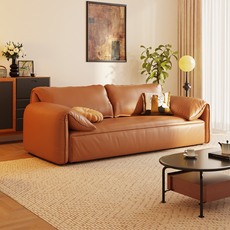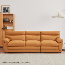 意式极简约焦糖色头层真牛皮沙发客厅小户型三人位豆腐块皮艺沙发