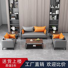 意厅式轻奢皮艺沙发组合客现代437简约会接待洽谈桌椅组客合