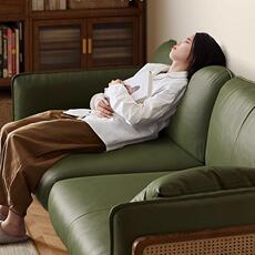 健匠沙发日式户型客厅家用北欧白蜡木藤编皮艺布SF-8032小实艺木