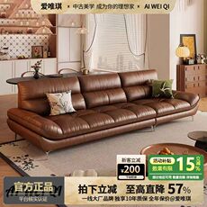 中古风皮艺浪沙发客厅现代宿设计GVS师美式古油蜡皮焦民糖复色波