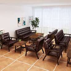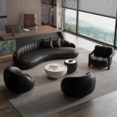 皮艺办公沙茶几组合套务装商三人位办公沙发发简约现代053室会客