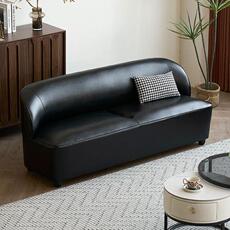 黑色沙发小户型客厅公寓休息区接待服装店铺极窄版皮艺双人小沙发