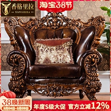 欧式皮艺沙发 实m木雕花小户型沙发转角香槟金沙发客厅奢华组合