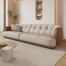 真皮沙发意式极简头层牛皮简约现代客厅北欧皮艺三人位奶油风直排