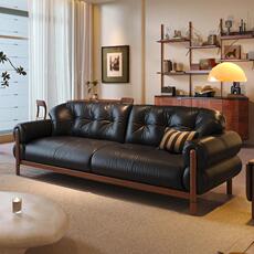 新中式现代简约实木沙发黑胡桃木家用客厅直排皮艺沙发三人位新款