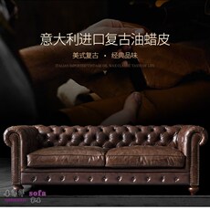 美式乡村皮艺沙发头层牛皮 复古做旧油蜡皮客厅三人位羽绒沙发