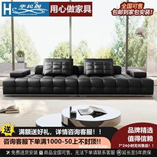 干元意式轻奢劳伦斯沙发皮艺大黑牛客厅2025新款别墅大平层商务