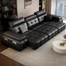 意式极简沙发床两用可电动伸缩现代简约客厅直排功能电动真皮沙发