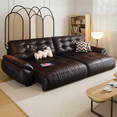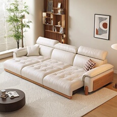2025新款奶油风真皮智能可调节头层牛皮伸缩电动功能沙发可躺可睡