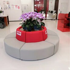 早教幼儿园医院银行大厅休息等候区绕圆柱软包沙发凳创意圆形卡座