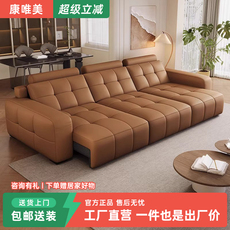 现代意式轻奢平移电动沙发床客厅零靠墙头层牛皮沙发家用