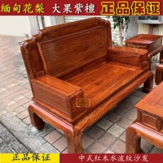 红木家具缅甸花梨中式水波纹沙发 大果紫檀独板奢华大气原木沙发