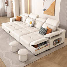 法式奶油风猫抓皮帆船沙发床客厅直排小户型可折叠功能皮艺沙发