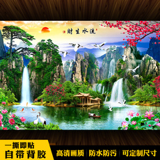 新中式客厅家和万事兴沙发背景装饰自粘壁画中国风中堂山水墙贴画