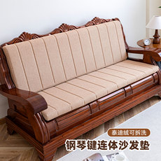 可拆洗实木加硬海绵沙发垫四季通用木沙发坐垫带靠背中式三人坐垫